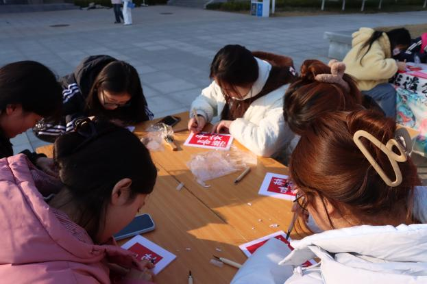活动中,活字印刷,手工缠花,捏面人等活动精彩纷呈,参与师生可以亲身体验活字印刷术,亲手排版、涂墨、印刷,感受古人的智慧在指尖流淌,见证文字的灵动诞生。制作过程中,学院老师对宋文化进行了深入浅出的讲解,同学们纷纷表示受益匪浅。此外,捏面人、手工缠花和清明上河图剪纸,也吸引了大量学生积极参与,进一步激发了同学们对宋代文化艺术的热情与喜爱。