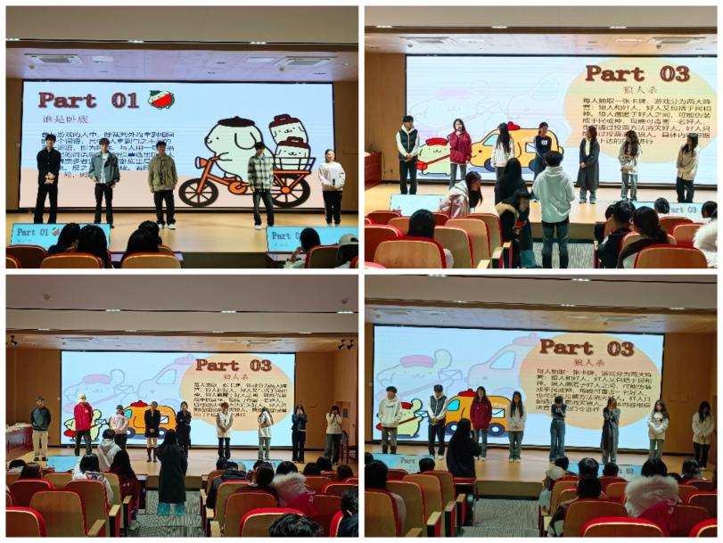 随后,精彩的互动游戏环节将活动气氛推向高潮。“谁是卧底”游戏环节,师生们拿到词语后,开始绞尽脑汁描述,话语中充满玄机。有人描述得模棱两可试图混淆视听,有人则小心翼翼试探,现场氛围紧张又刺激,欢声笑语与激烈讨论交织。此外,“不要做”“你画我猜”等各种有趣的娱乐活动也吸引了大量学生踊跃参与,现场准备了各种精美纪念品赠送给参与活动的同学们,进一步激发了大家的热情。