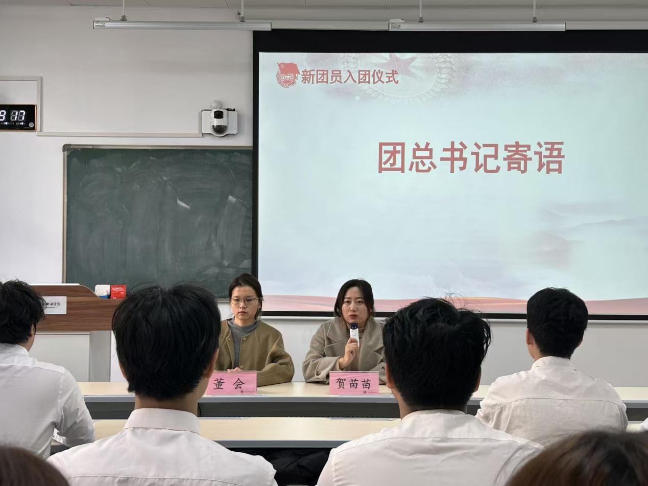 团总支书记贺苗苗在寄语中对新团员表示热烈祝贺,并对他们提出殷切期望。她勉励新团员们要坚定理想信念,筑牢思想根基;要勤奋学习实践,练就过硬本领;要发挥模范作用,勇于担当奉献。她强调成为一名共青团员,就肩负起了时代赋予的光荣使命,要努力成长为有理想、敢担当、能吃苦、肯奋斗的新时代好青年。