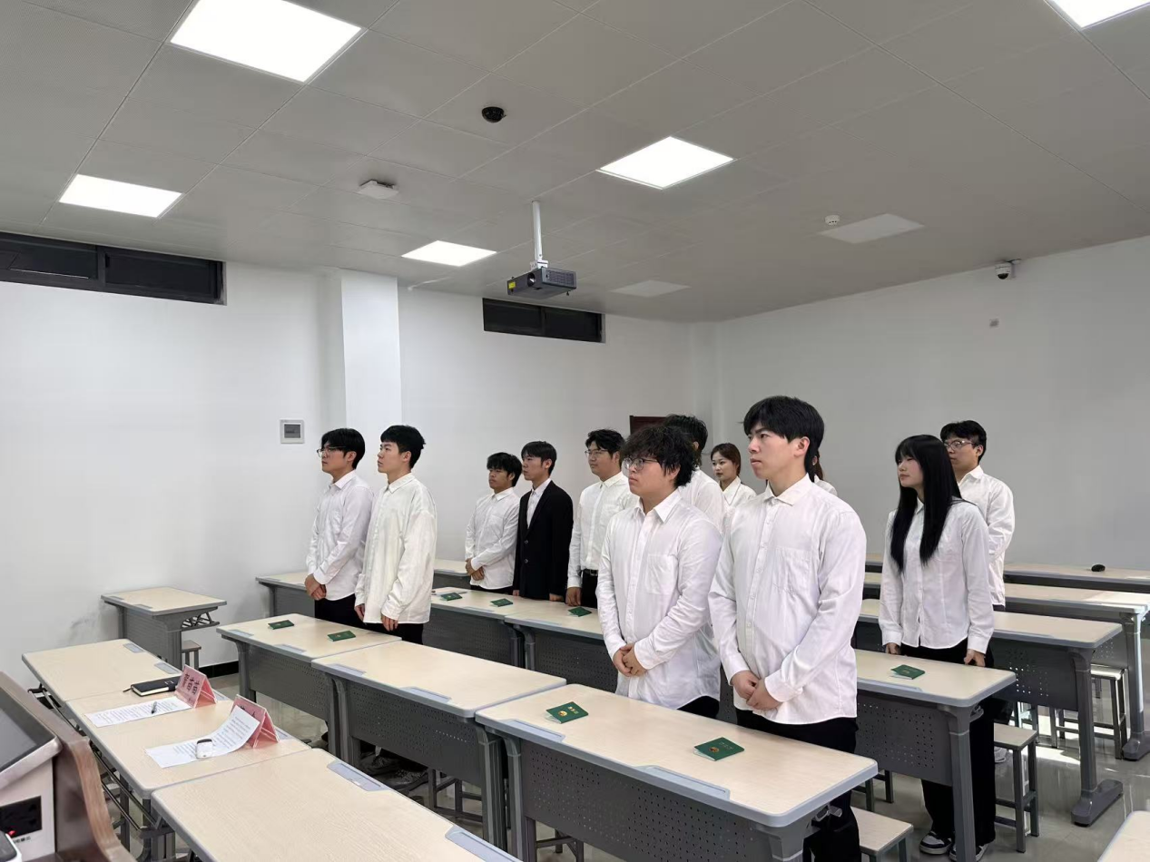“我志愿加入中国共产主义青年团……”优秀团员代表皇甫淑怡同志作为领誓人,带领全体新团员面向团旗举起右拳,庄严宣誓。铿锵有力的誓言回荡在讲堂内,不仅是对共青团组织的承诺,更是对革命先辈的告慰,彰显着新时代青年赓续红色血脉、担当民族复兴使命的决心。