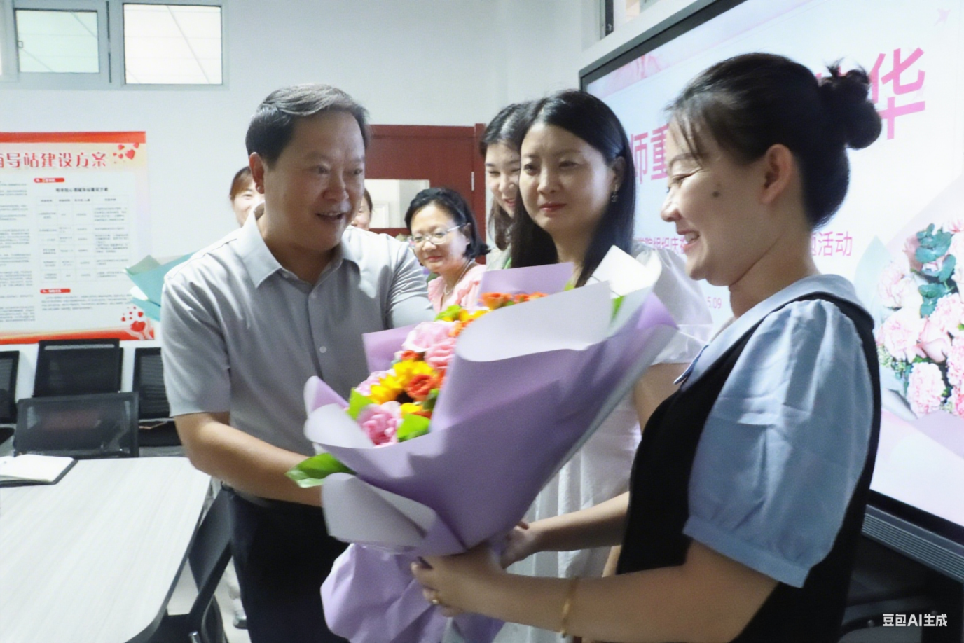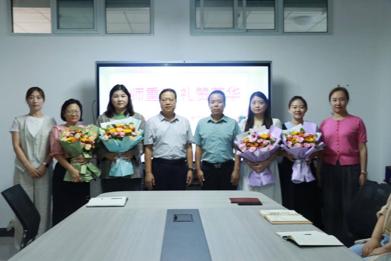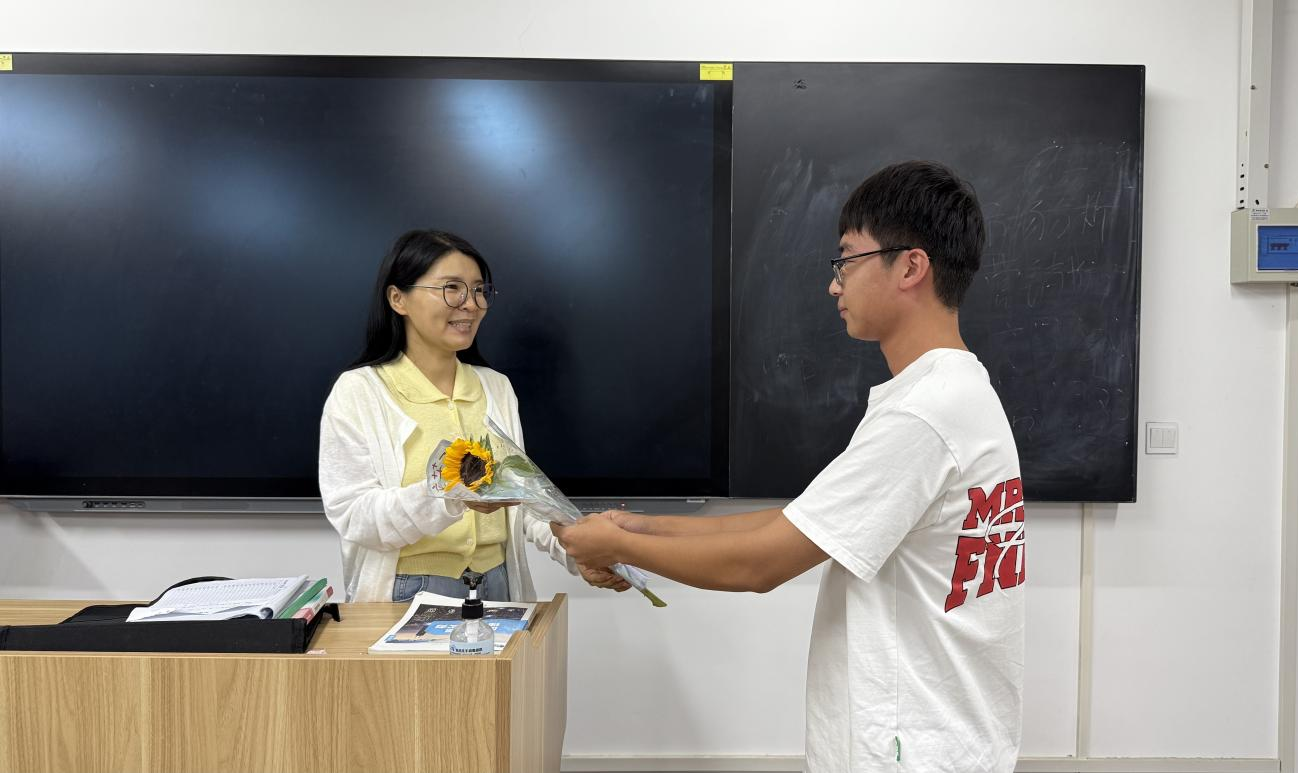 随后,常新中为学院教师代表送上精心准备的鲜花,娇艳的花朵既象征着教师们蓬勃的教育热情,也承载着学校对教师无私奉献精神的敬意。