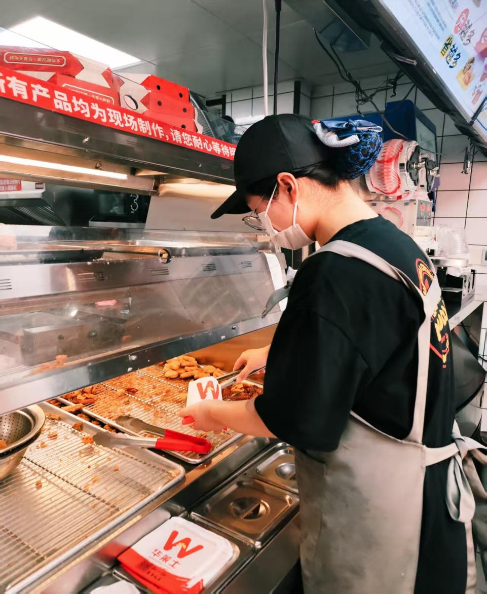 好在店里的姐姐们都很耐心,他们教我用便签记重点,学习电脑点餐,还分享和顾客沟通的小技巧。最忙碌的当属饭点高峰期,烤炉的热气、不停的点餐声、急促的出餐提示音交织在一起,大家各司其职又相互搭手,让我真切感受到团队协作的重要性。