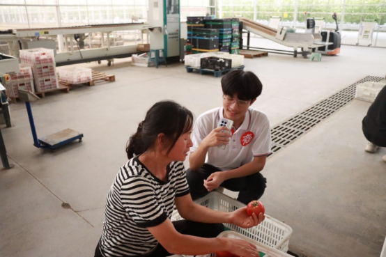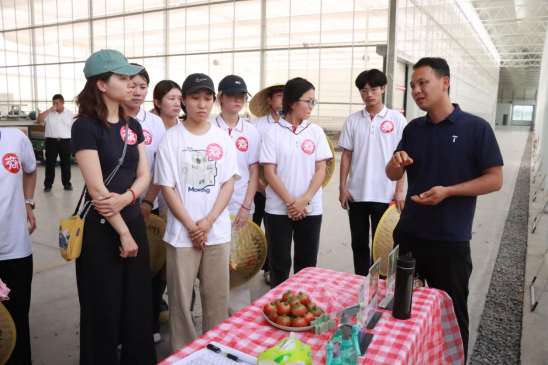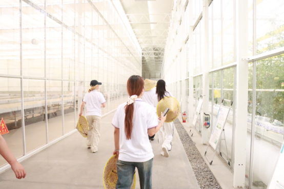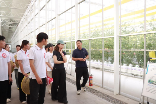 下午,pg游戏电子模拟器青春“e”行师生志愿服务队在水木焦桐蔬菜工厂负责人的带领下走进现代化蔬菜大棚,近距离感受智慧农业魅力。
