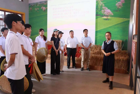 在木铎湾·丰收馆,讲解员结合图文资料和珍贵历史照片,生动地讲述了兰考人民在党的领导下,艰苦奋斗、改革创新,一步步实现农业现代化的奋斗故事。从曾经饱受风沙、盐碱之苦的贫瘠之地,到如今高效农田遍布、特色农业蓬勃发展的丰收沃土,兰考在农业领域的巨大变革让志愿者们惊叹不已。