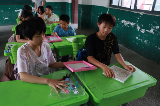 针对六年级同学,植物拓染和纸浆画课程是不错的选择,在激发同学们创造力的同时,也加强他们的动手能力。他们在志愿者的指导下,将自然元素与艺术创作相结合,制作出一幅幅精美的作品。整个教学过程中,课堂氛围热烈,孩子们热情高涨,在文化与艺术的熏陶中收获成长。