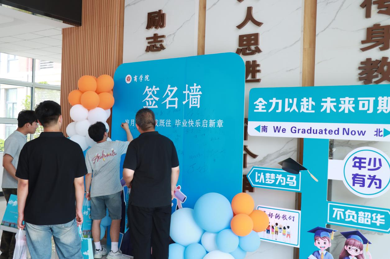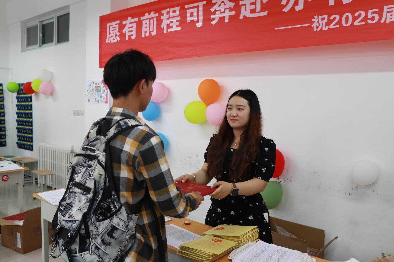 在毕业证领取现场,精心布置的签名墙上,毕业生们挥毫写下对未来的期许与对母校的祝福。一句句真挚的话语,一个个潇洒的签名,定格成属于这个夏天的纪念。当他们从辅导员老师手中接过沉甸甸的毕业证书时,指尖触摸到的不仅是纸张的质感,更是知识与成长交织的硕果。老师们温暖的笑容、真挚的祝福,“毕业快乐,前程似锦”的话语,饱含着无尽的牵挂与期许,让这份毕业时刻更添一份温情。