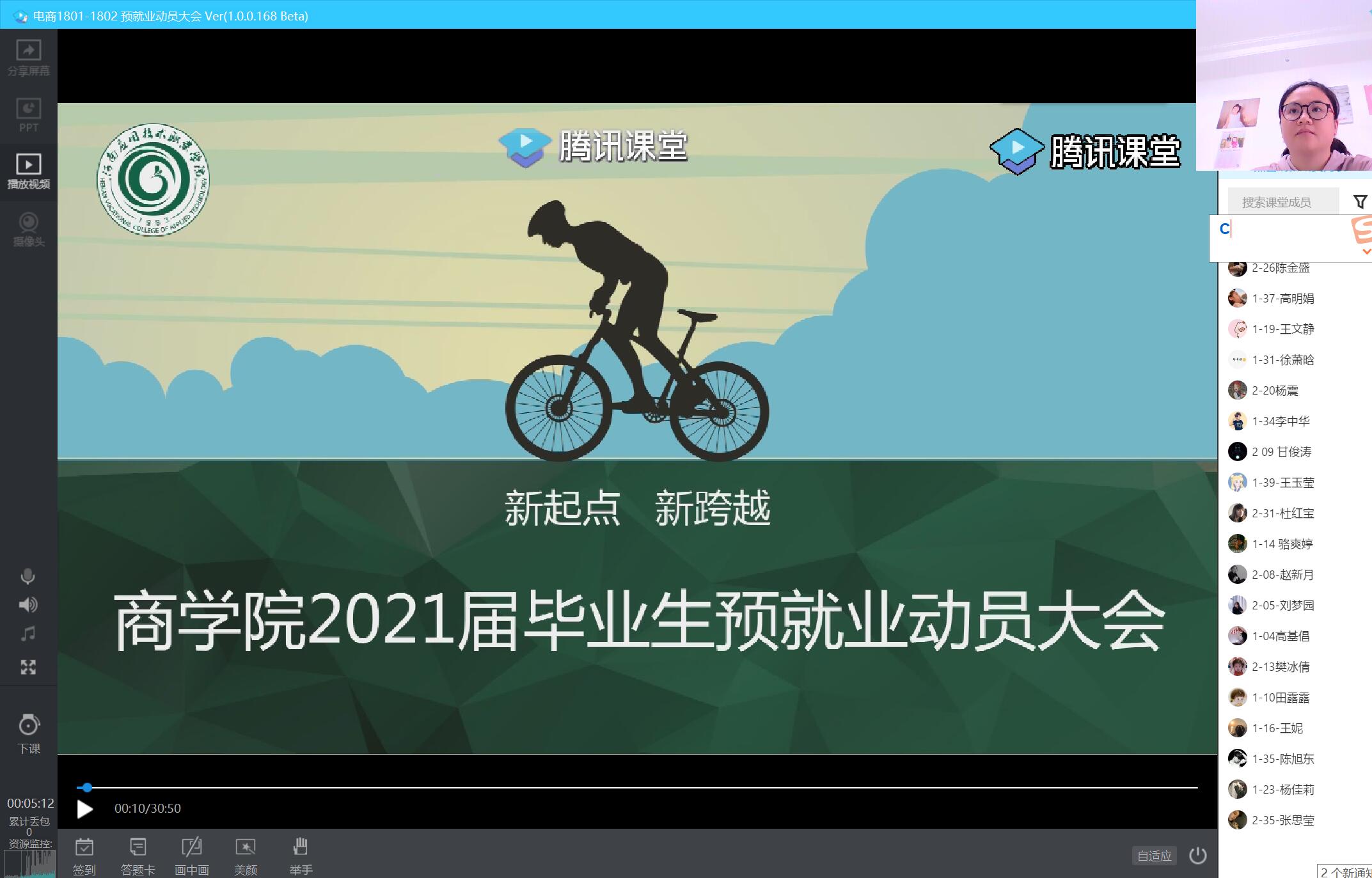 为做好2021届毕业生的就业工作,帮助毕业生认清目前的就业形势,提升就业意识和就业紧迫感,4月28日下午,pg游戏电子模拟器召开了2021届毕业生预就业“云”动员大会。会议由教学办主任王珂老师主持,pg游戏电子模拟器院长孙勇、副书记周燕出席会议。pg游戏电子模拟器18级全体师生在线参加了会议。