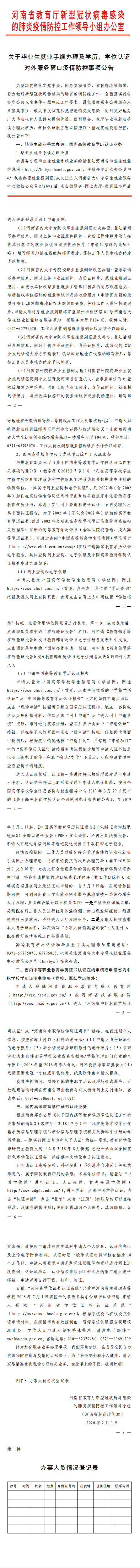 关于毕业生就业手续办理及学历、学位认证对外服务窗口疫情防控事项公告