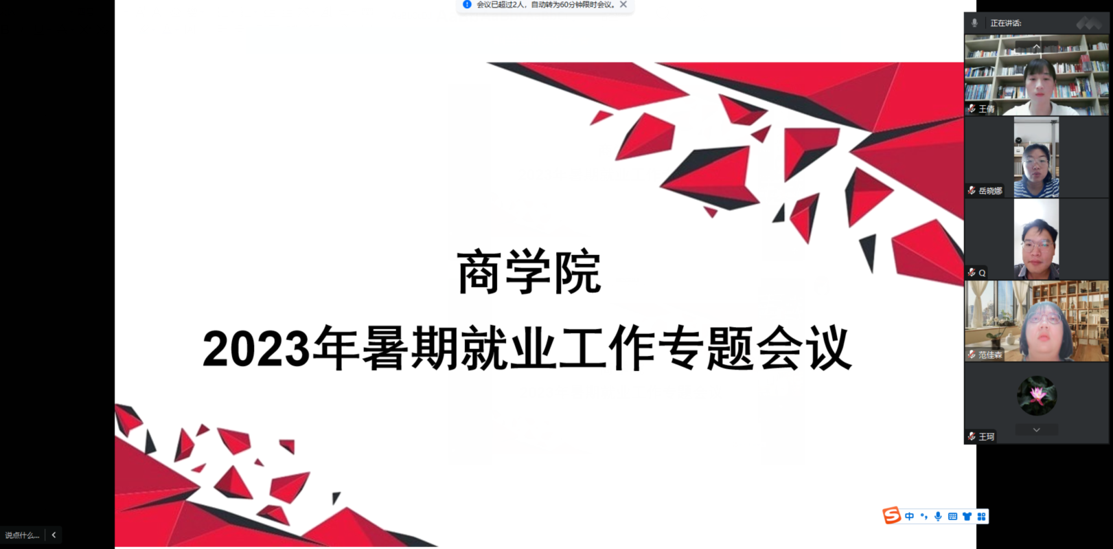 按照学校就业工作部署,为更加精准、科学地统计学院毕业生去向落实和毕业生就业统计核查工作,7月21日下午,pg游戏电子模拟器组织召开暑期就业工作专题会议,会议以线上形式进行,由pg游戏电子模拟器党总支书记苏云峰主持,党总支副书记王倩及2023届全体辅导员参加会议。